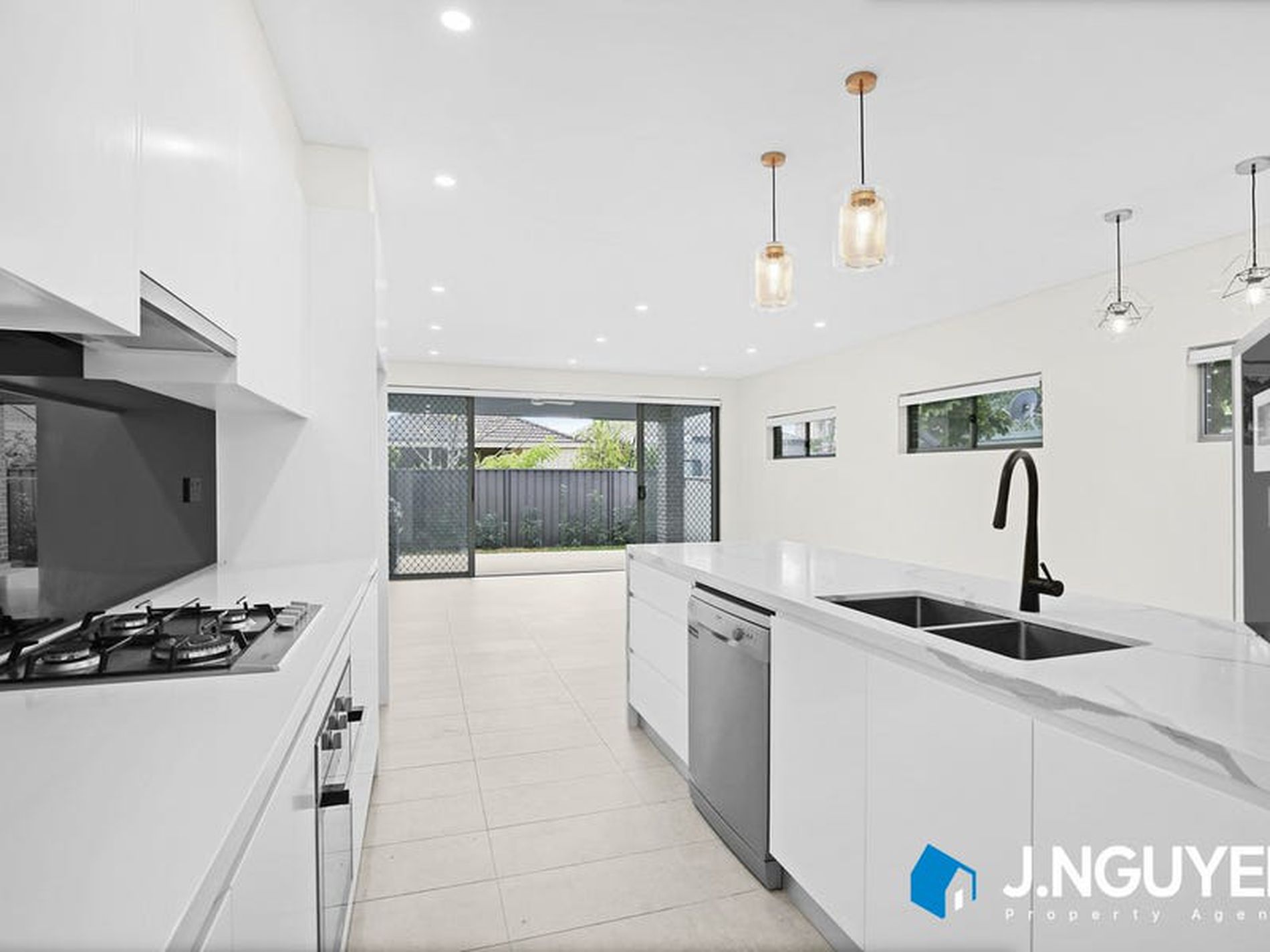 - Spacious gourmet kitchen with butlers pantry, 40mm stone island bench, under mount sink, premium kitchen appliances (gas cook top, electric oven & dishwasher) & mirrored splash back.